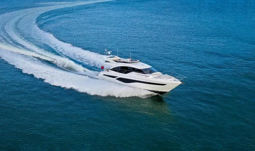 Equipped with twin Volvo D13-900 engines providing speeds up to 33 knots, in addition to a deep-V resin-infused hull, the F55 delivers dynamic and effortless seakeeping.