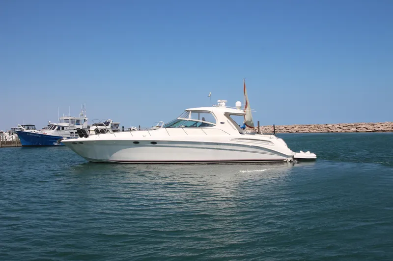 The Sea Ray 550 Sundancer combines classic elegance with unparalleled passenger amenities. She carries herself with the air of luxury and seaworthiness that are unique hallmarks of every Sea Ray yacht. Her wide beam delivers extra stability and a smooth ride topsides, with remarkable spaciousness and comfort below.