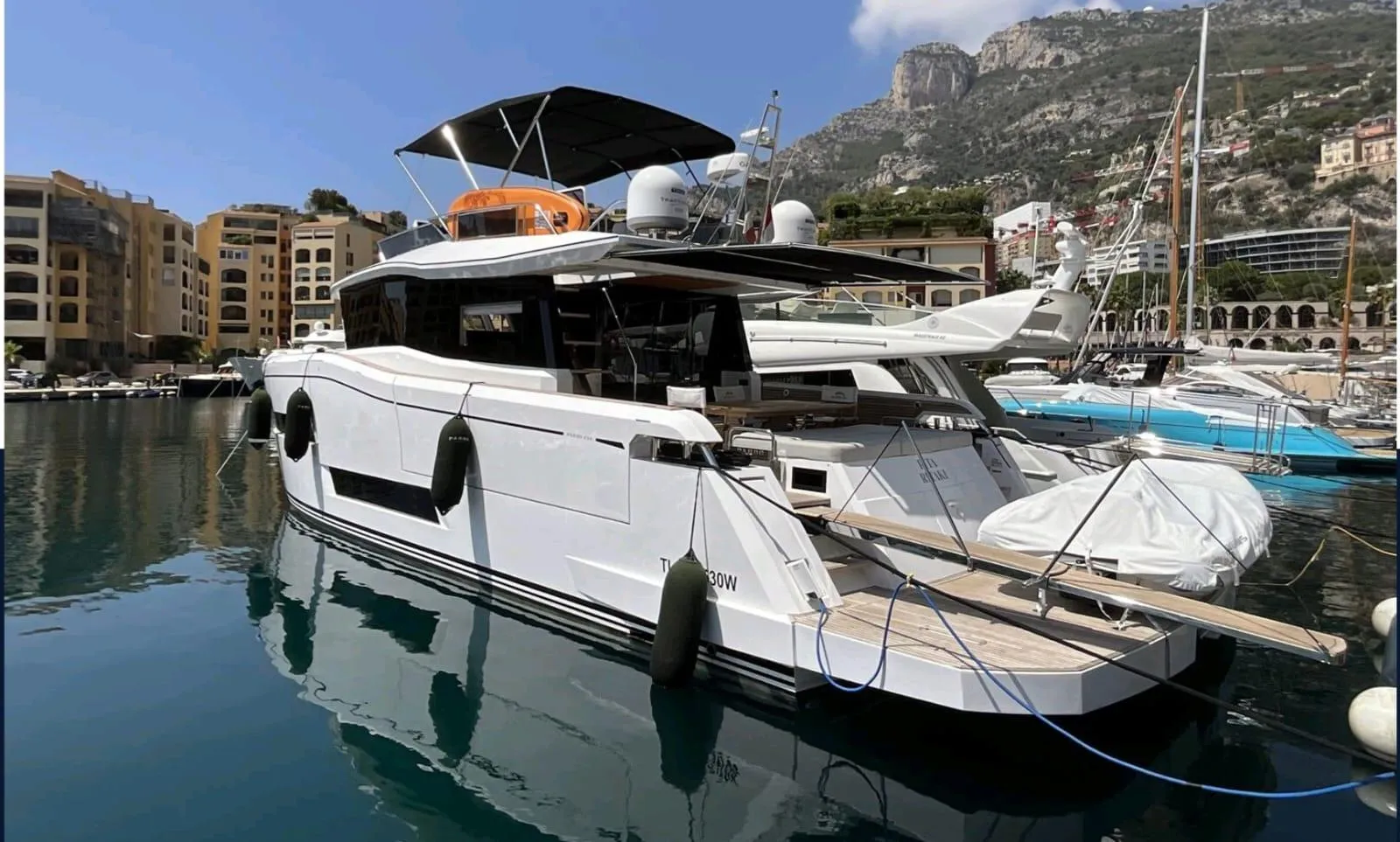 MASTER CABIN, HEAD WITH SEPARATED SHOWER, VIP CABIN, OAK INTERIOR, EXTERIOR IN TEAK WITH BLACK CAULKING, 2X VOLVO IPS 600 (435HP) DIESEL WITH JOYSTICK, GENERATOR 4 KW, INTERCEPTOR, CARBON BLACK T-TOP, BLACK WATERLINE, UPHOLSTERY EXTERIOR IN SILVERTEX (ICE)