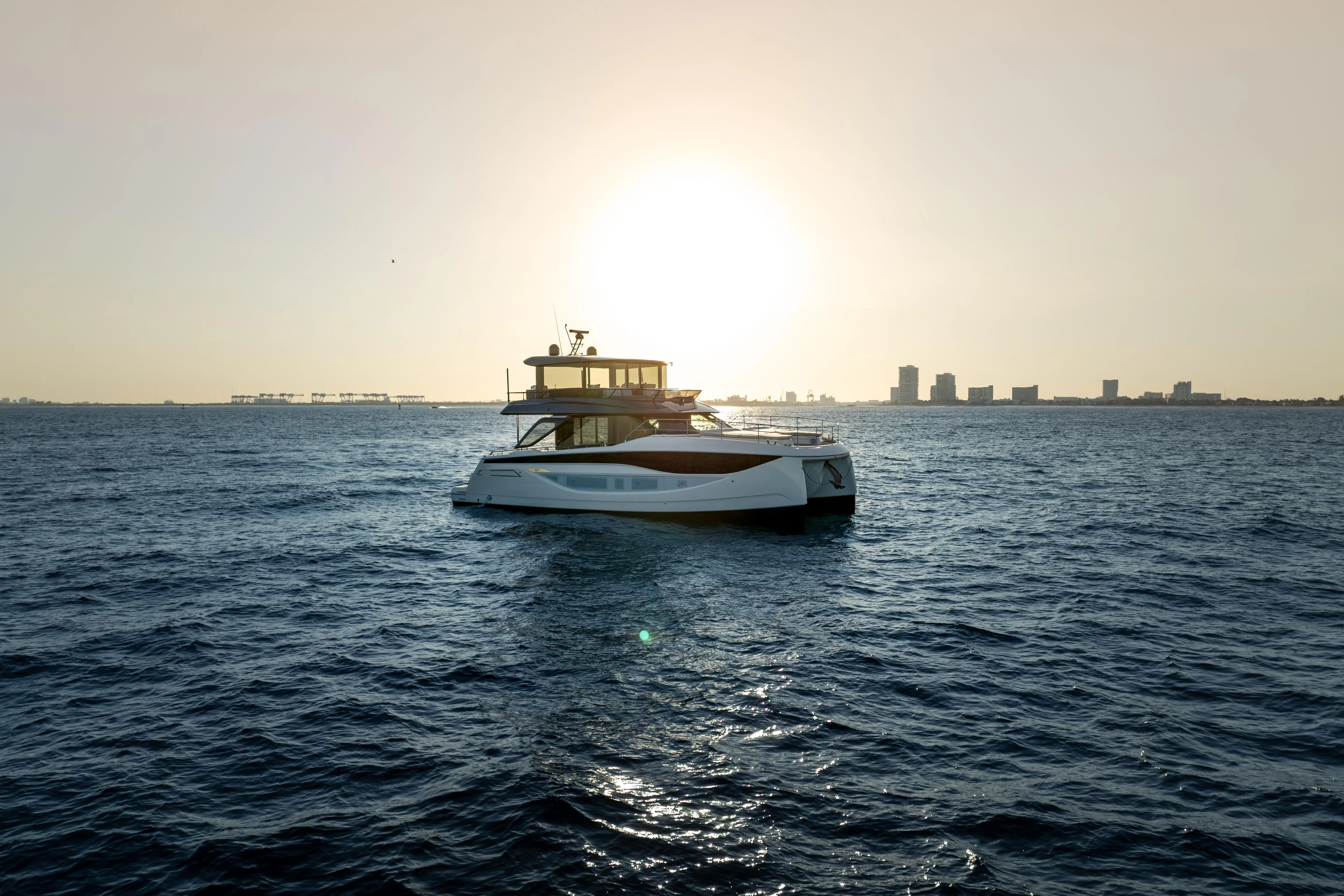 The Prestige M7 redefines luxury cruising with the space, stability, and comfort of a true power catamaran. Designed for discerning owners who seek both elegance and performance, this flagship model offers exceptional volume and a refined contemporary interior. Expansive panoramic windows flood the salon with natural light, highlighting premium finishes and creating a serene, inviting atmosphere. Generous cabins with en-suite bathrooms provide unparalleled comfort and privacy, making every voyage a truly indulgent experience.