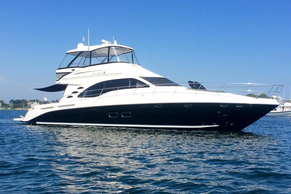YARD MAINTAINED VESSEL. SPOTLESS1 900 HP MANNS. A1 &A2 SERVICE DONE. FROM HER HARD TOP WITH FULL STRATOGLASS(NEW ENCLOSURE) TO HER HYDRAULIC SWIM PLATFORM EVERYTHING WORKS, THE HUGE FLYBRIDGE HAS REFRIGERATOR, AIR CONDITIONING, A GREAT AMOUNT OF GUEST SEATIMG, LARGE WELL APPOINTED HELM STATION, WITH RADAR, COLOR CHART PLOTTER, AUTO PIOLET, ENGINE MONITERS, VHF, STANDARD ENGINE GUAGES, HELM CHAIRS, CARPETING, HELM COVER AND STAIRS TO THE BRIDGE. SHE HAS THREE STATEROOMS, 2 FULL HEADS WITH STALL SHOWERS, WASHER AND DEYER, FULL GALLEY WITH SS APPLIANCES, CUSTOM BLACK GALLEY CABNETRY(NO FADING) RAISED DINETTE, TWIN SALON SETTES, GA, SLIDING GLASS FOORS TO THE COCKPIT, FULLCOCKPIT CANVAS, TRANSOM DOOR, HYDRAULIC SWIM PLATFORM. BOW RAILS, WIDE ACCESS TO FORE DECK, ELECTRIC WINCH WITH ANCHOR AND RODE, FOOT PEDALS,AND BRIDGE CONTROLS. COAST GUARD PACKAGE. FENDERS AND LINES