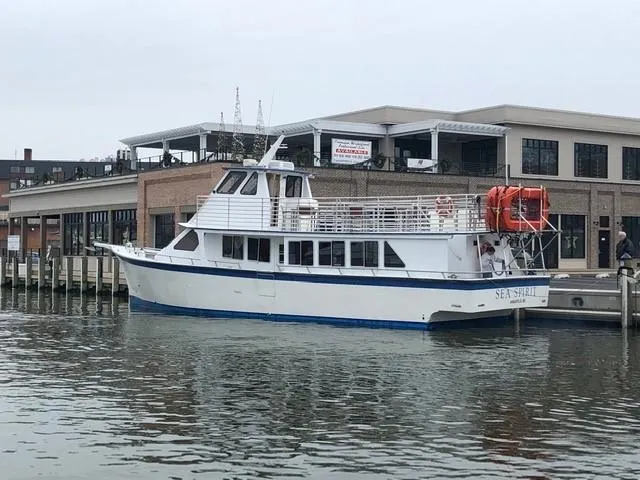 1989 60' DMR Yachts Passenger Vessel. USCG certified for up to 85 passengers. Stability letter for 106. There is a bar/galley, new tables and chairs on the upper deck, new tables and chairs on the main deck in the salon area. Stateroom with 2 queens, 3 heads and 1 shower, closet and plenty of storage. Powered with twin Isuzu turbo diesels that are quiet and fuel efficient. 20 KW Generator. Currently set up for luxury yacht charters. This vessel just finished a recent refit with many upgrades. New pictures coming soon. Can be used as a charter, ferry or any type of passenger vessel.