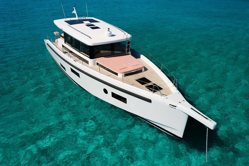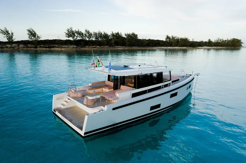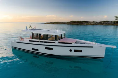 Her innovative hull delivers impressive fuel efficiency and smooth cruising, while expansive windows create bright interiors with panoramic 360° views. Designed for both performance and practicality, she reaches speeds up to 19 knots and offers features including a large swim platform and tender storage for up to 4.0m.