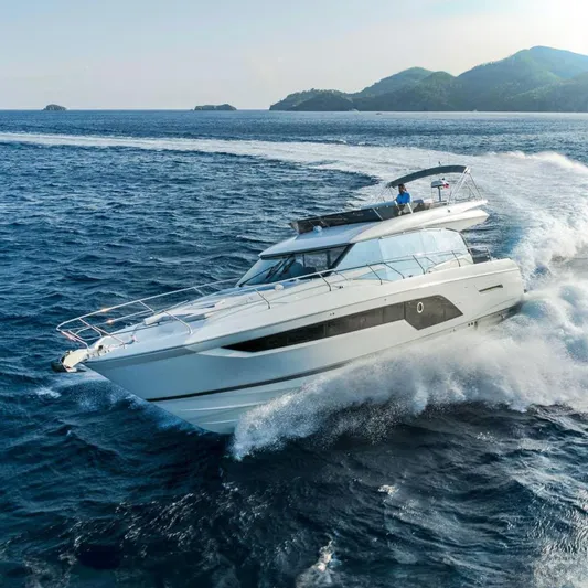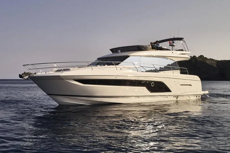 Fluid lines and excellent ergonomics are the hallmarks of the PRESTIGE 590. Each space and every curve has been designed with form, function and comfort in mind. A generous flybridge and sleek radar arch enhance the onboard comfort and the powerful look. The ability to choose between an independent crew cabin and a large tender garage is unique in her category. All these design features come together in a yacht that provides remarkable comfort and dynamic design.