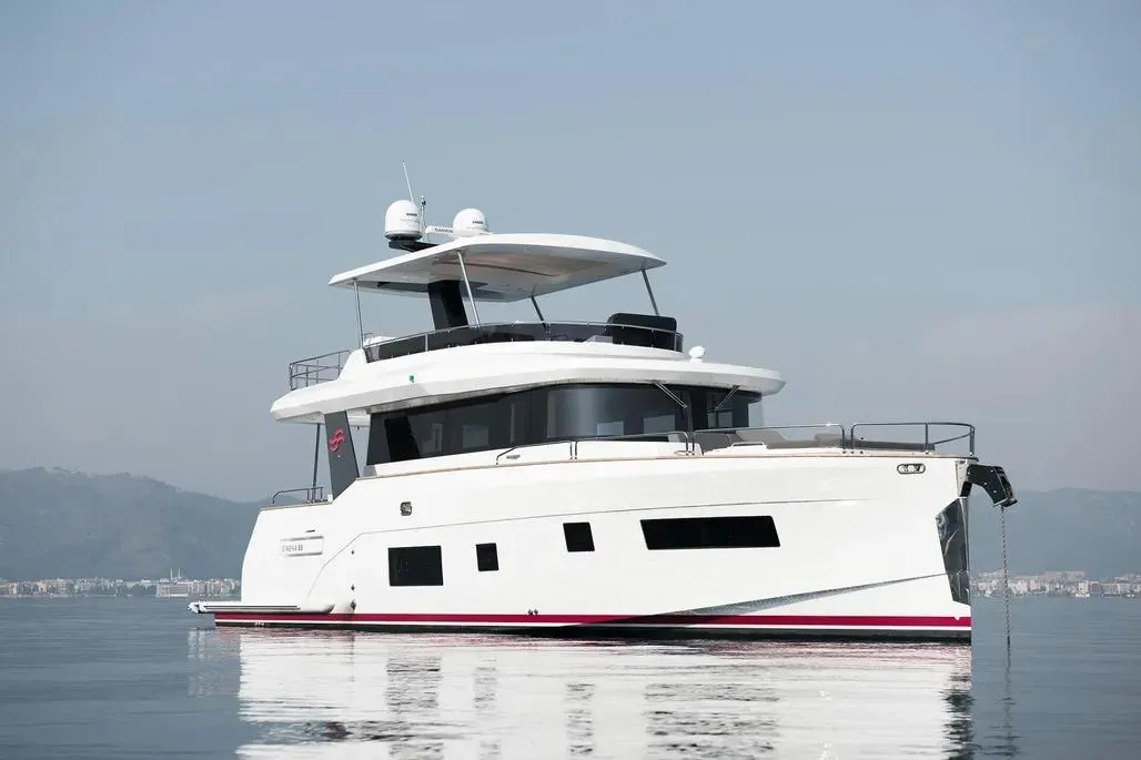2024 Sirena 58 Fly, a remarkable motor yacht that combines elegance with performance. With an overall length of 18.58 meters, this vessel boasts a sleek fiberglass hull designed in a semi-displacement shape, ensuring smooth navigation and stability on the water. Powered by two robust VOLVO PENTA D11 inboard engines, each delivering an impressive 625 horsepower, the yacht promises exhilarating speed and reliability. With a maximum hull speed of 25 knots, it is perfect for those seeking adventure on the open seas. Accommodating up to eight guests, the Sirena 58 Fly features three well-appointed cabins and three heads, providing ample space for comfort and privacy. The electric windlass enhances convenience during anchoring, making your experience effortless. This yacht is a perfect blend of luxury and functionality, ready to create unforgettable memories on the water.The saloon is a bright, welcoming space with an attractive mix of light oak cabinets and darker walnut flooring and accenting. Cream leather with contrasting brown piping coats the generous dinette and seating amidships, which is slightly raised above the galley level to improve sightlines for those on the seats. The décor is modern yet the furniture has nicely rounded edges with no hard corners to bash yourself against at sea, though the saloon could do with a few more handholds.