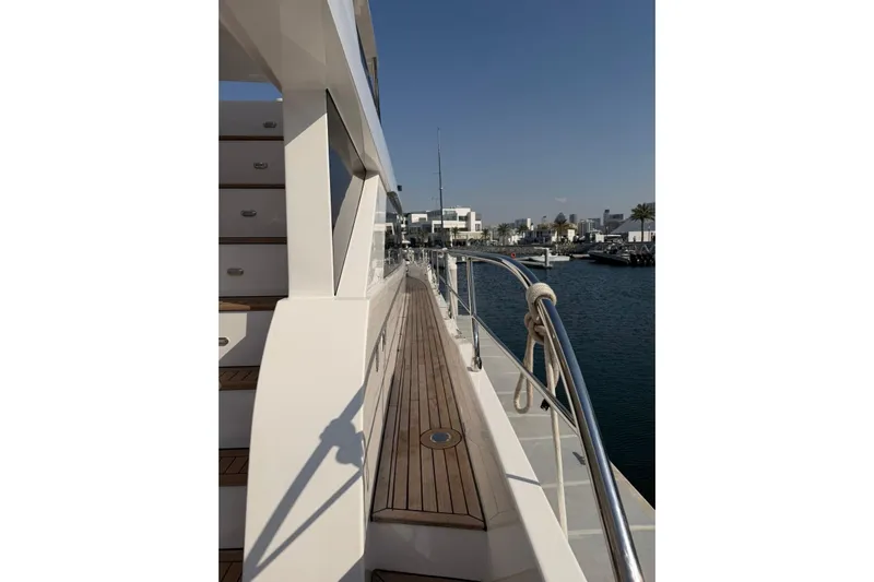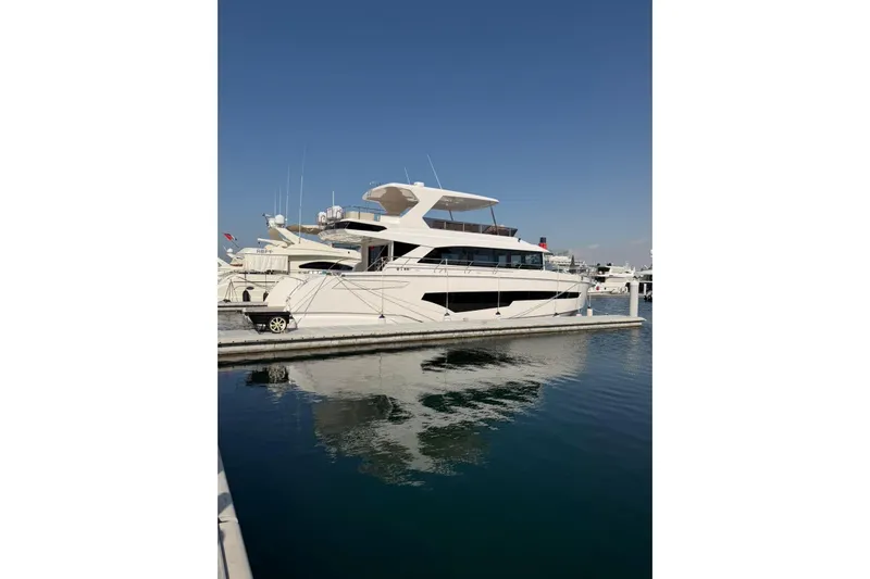 Introducing the stunning 2025 Haiquan Yachts 62 Flybridge, a remarkable vessel that embodies luxury and performance. This brand-new yacht measures an impressive 62 feet in overall length, crafted with a sleek fiberglass hull designed for planing, ensuring smooth navigation across the water. Powered by two robust Yanmar inboard engines, each delivering 440 horsepower, this yacht promises exhilarating speed and reliability. The direct drive system enhances responsiveness, making it a joy to operate. With stainless steel 4-blade propellers, the vessel ensures efficient propulsion and durability. The Flybridge design offers an elevated vantage point, perfect for enjoying breathtaking views while cruising. This yacht is ideal for those seeking adventure and comfort on the water, combining modern engineering with elegant aesthetics. Experience the thrill of the open sea aboard the Haiquan Yachts 62, where every journey becomes an unforgettable experience.