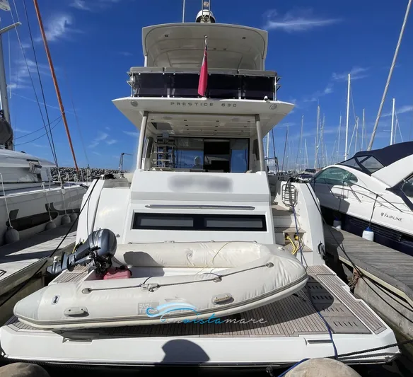 Allarme fumo/gas, Allarme motore, Allarme sentina, Ancora, Autoclave, Batterie, Cavo corrente di banchina, Doppia timoneria, Faro orientabile, Flap idraulici, Impianto antincendio, Lavandino nel Pozzetto, Luci di cortesia, Luci subacquee (di carena), Piattaforma (Affondabile), Pompa di sentina automatica, Ponte in teak, Porta ingresso, Presa 220V banchina, Presa acqua banchina (Con addolcitore e cavo di 10 m), Raddrizzatore, Selle per Tender, Stabilizzatori (Seakeeper), Tavolo pozzetto (x 6 comodo), Tavolo Salone Abbattibile (Modificato estenzione e abbassamento), Tromba, T-Top (Nel Fly con Tenda elettrica), 2 Winch tonneggio di poppa.