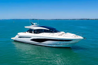 The elegant lines of the New V60 Princess encapsulate an expansive and sociable cockpit arrangement with a generous seating area and fully equipped wetbar with barbecue. At anchor, her electro-hydraulic bathing platform creates a launch system for a tender, jet ski, or simply a secluded swimming platform. With twin MAN V8 1200hp engines taking you up to 38+ knots, she is an altogether adventurous Sport Yacht.
