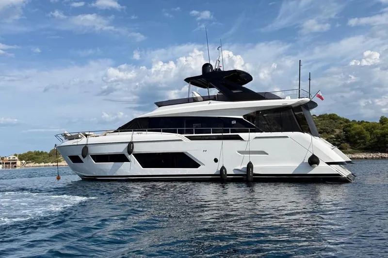 Launched in 2025, this brand-new Ferretti Yachts 670 represents the latest evolution of one of Ferretti’s most celebrated models. Developed through the collaboration between the Ferretti Group Product Strategy Committee and Engineering Department, she features exterior styling by renowned architect Filippo Salvetti and interiors designed by Ferretti’s in-house team.