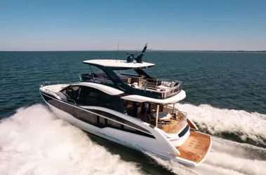Ocean World yachts are please to present the Galeon 620 FLY, it captivates with its bold two-tone hull, generous beam, and sweeping glazed windows that flood the main deck with natural light and panoramic views. The expansive flybridge features U-shaped seating, a modernized wet bar, and an automated sunroof, with the option of a fabric awning for added shade. At the stern, owners can opt for either free-standing sun loungers or a large seating area—perfect for unwinding in style.