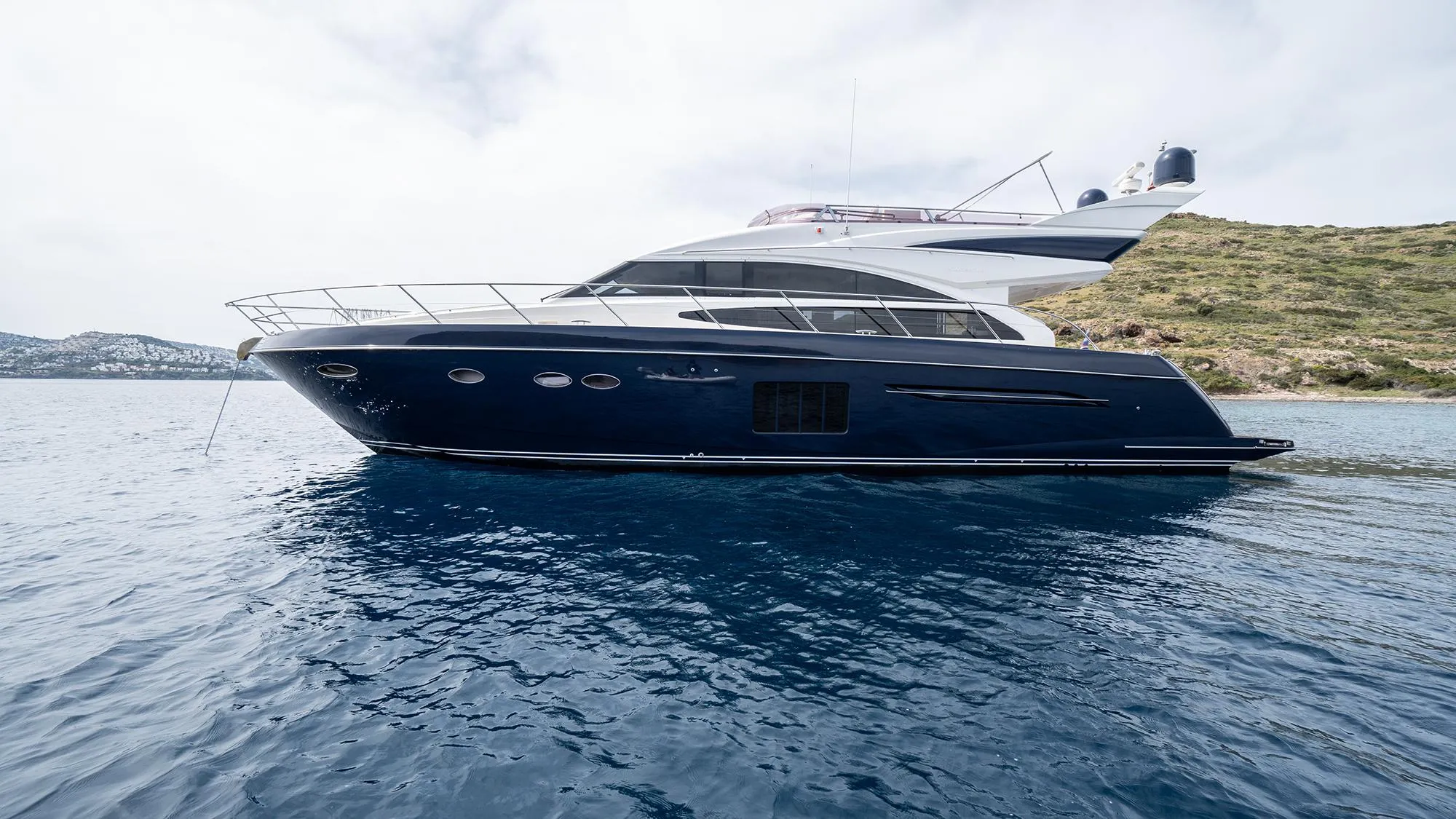 A well-maintained Princess 64 with low engine hours (1375), providing substantial and discreet living space.