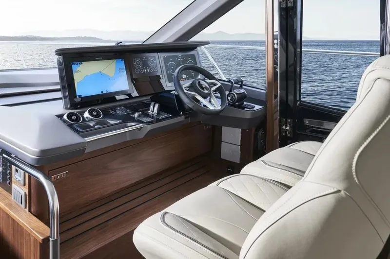 The F65-075 boasts a contemporary use of layout featuring the latest geometric design elements. Focused around a sociable use of space, she provides accommodation for eight guests across four cabins. Vast panoramic saloon windows and signature wrap around front screens offer uninterrupted vistas from the main deck whilst elongated hull windows generously flood her accommodation areas with light.