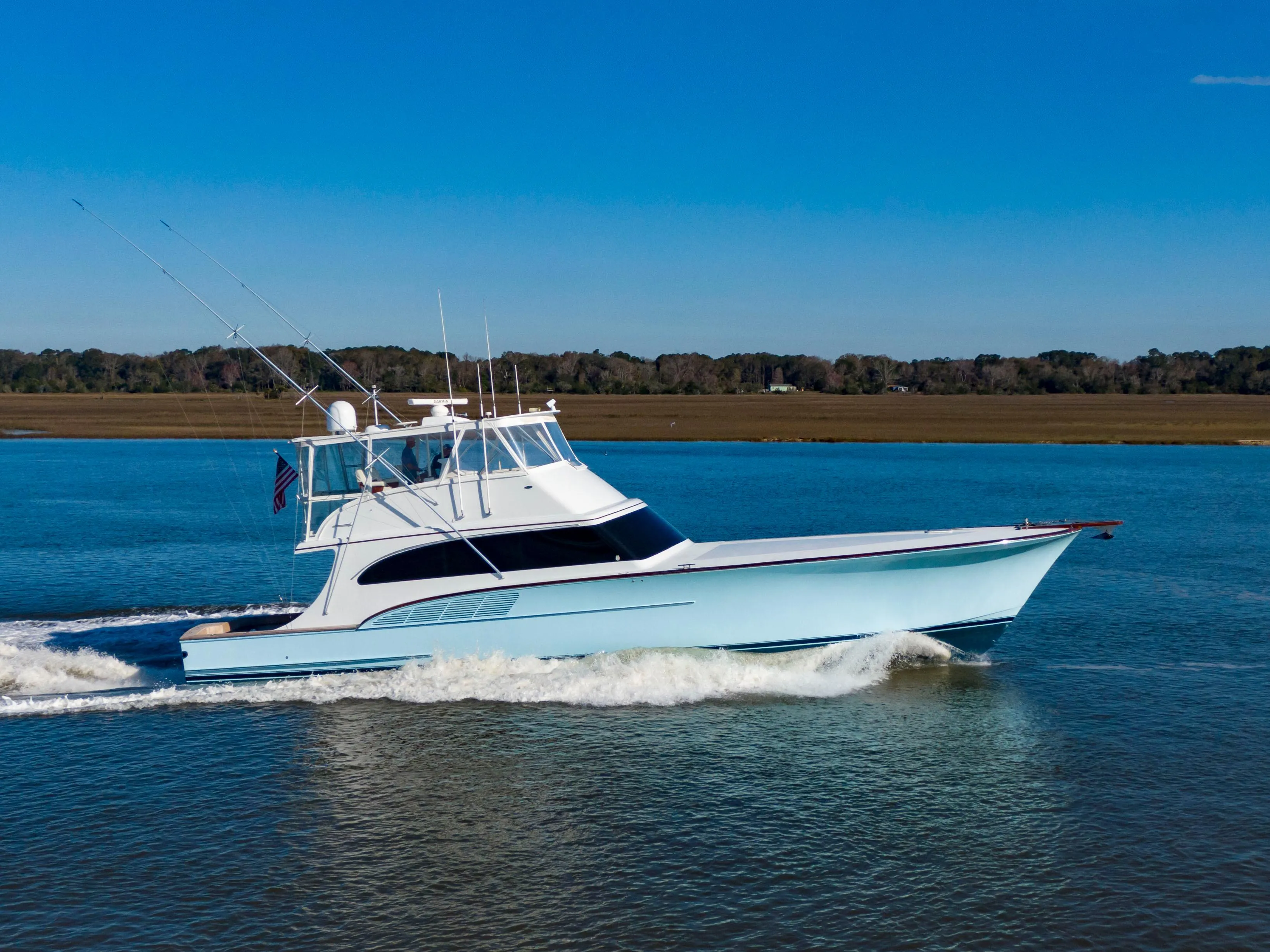 Introducing the 2005 Custom Carolina 66, a stunning vessel designed by Donald Blunt and Associates, affectionately named "BIG BLUE." With its timeless elegance and exceptional performance, this meticulously maintained yacht is the epitome of luxury on the water.