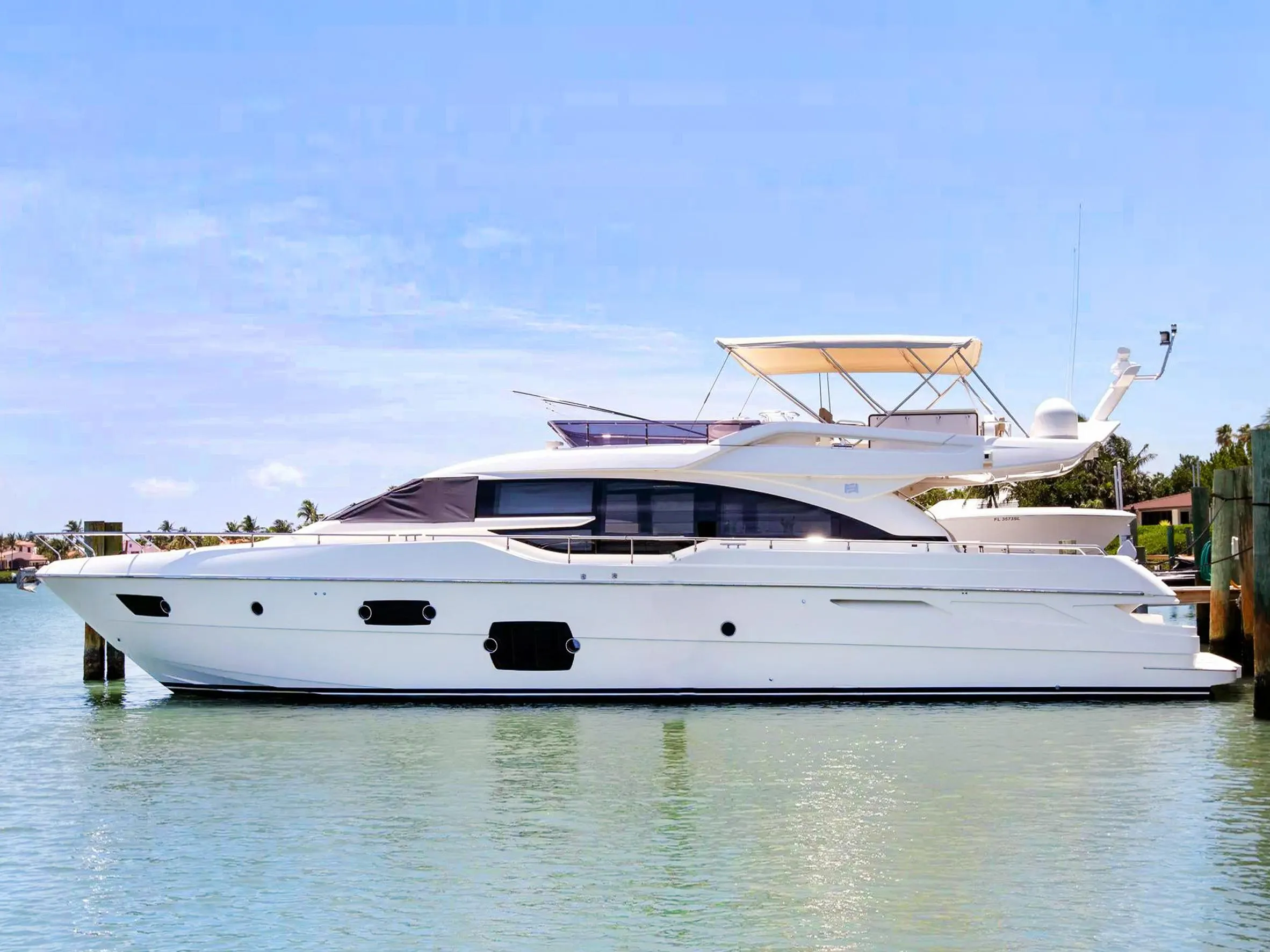 Excellent condition and well-maintained! Ferretti 690 can accommodate the whole family in her ultra-modern 4 stateroom accommodations. Each cabin has large windows that allow for plentiful natural light. Next, guests can ascend to the flybridge, complete with a hydraulic bimini top, large sunpads, and spacious seating areas. Additionally, the aft deck has a large U-shaped seating area for Al-Fresco Dining and relaxation.