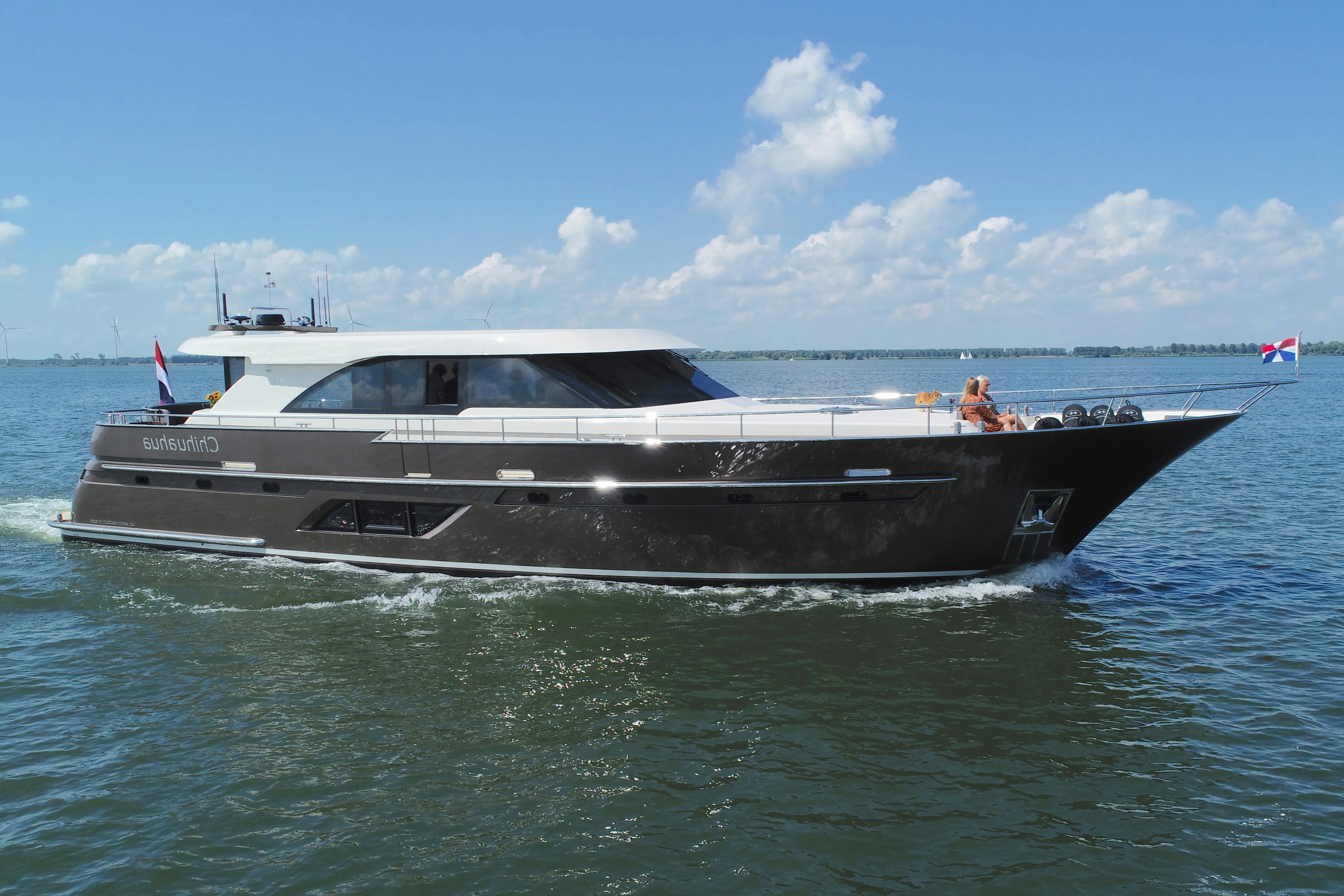 This Van den Hoven Executive 2100 is designed for those who want to enjoy long-term and comfortable stays on board. This yacht is build in 2019 features a single, very spacious master cabin amidships complete with a large walk-in closet and a full bathroom. The space in the forepeak currently serves as storage but is ready to be converted into a second bedroom if desired. In addition, a part of the walk-in closet can be converted into a third bedroom. Such requests can be discussed with the Van den Hoven shipyard. The deck-level saloon offers spectacular 360-degree views, enhancing the sense of space and light through the large windows. Wide sidedecks all around make it safe and easy to move around on a single level. The foredeck offers ample space for lounging, complete with a comfortable sofa for enjoying the view. The aft deck is also generously sized, with a semi-circular sofa for five people and a covered area providing shade on sunny days. Stylish stairs on both sides of the yacht lead to the spacious bathing platform, which also provides access to the professionally equipped engine room with good headroom. You'll enjoy a daily inspection here and see at one glance that all the technology is in working order. This vessel holds a valid CVO certificate. Furthermore, this Van den Hoven Executive 2100 is equipped with: a TV on the lift in the owner's cabin and saloon, access to the engine room from inside and via the bathing platform, separate washer and dryer, deck wash connection, closeable doors from the cockpit to the bathing platform, pleated curtains in the saloon, side door on the sb-side near the helm station, stainless steel fender holders on the foredeck, deck lighting, a foldable radar arch, and an oval stainless steel railing with stainless steel trim around, dual fuel filters, an outdoor shower, a dishwasher, LED interior lighting, four aluminum folding doors to the saloon, AIS, Hydronautica remote control for bow and stern thrusters and engines, a screen door in the aft saloon, and a cover for the outdoor bench. This yacht can be viewed on location in Belgium by appointment. For questions and/or to schedule an appointment, you are welcome 7 days a week at Elburg Yachting.
