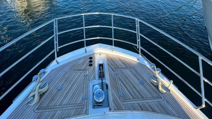 Teak, Presa 220V banchina, Presa acqua banchina, Stabilizzatori (Seakeeper gyro), Tavolo pozzetto, Tromba, 2 Winch tonneggio di poppa, Winch tonneggio di prua.