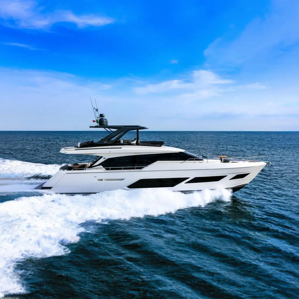 Avec ses lignes raffinées, ses finitions haut de gamme et ses volumes généreux, il incarne l’art de vivre à bord d’un Ferretti. Ce modèle offre 4 cabines luxueuses, une spacieuse cuisine entièrement équipée, un salon baigné de lumière avec vue panoramique, et un flybridge spectaculaire pour des moments inoubliables en mer.