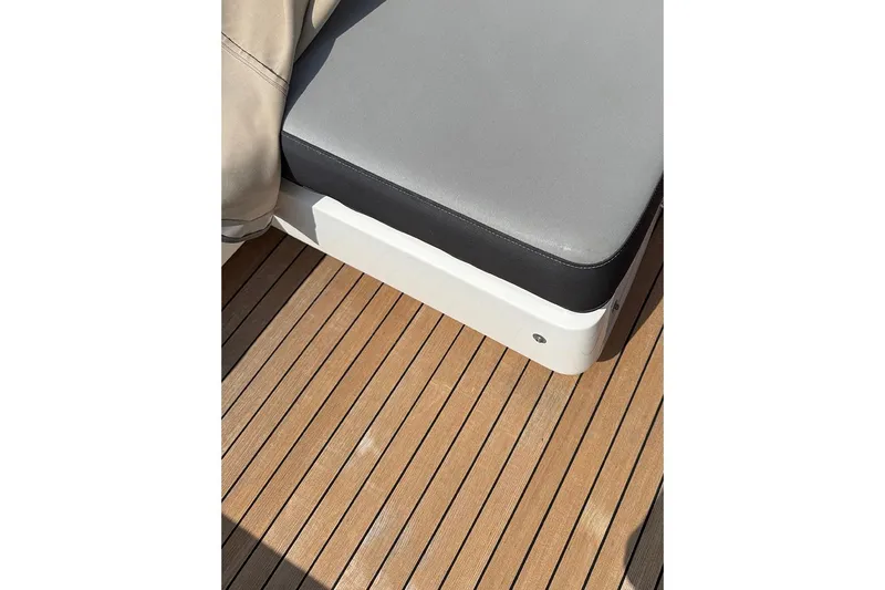 With twin Caterpillar C32A engines producing a total of 3,446 hp, this S72 delivers impressive performance and a solid ride even when the sea begins to build. The layout, featuring three spacious cabins and a separate crew cabin, makes the yacht flexible for both family cruising and extended journeys with crew. The Serotina cherry interior and well-planned social areas create a refined and timeless atmosphere on board. The TRAC stabilisation system, offering both underway stabilisation and zero-speed functionality, significantly increases comfort during long passages as well as at anchor. The generous level of equipment – including a watermaker, FLIR camera, advanced navigation suite and hydraulic thrusters – makes the yacht well suited for serious cruising and extended periods at sea. The Steel Grey hull and full teak decks provide a modern overall impression and a practical solution for life on board.