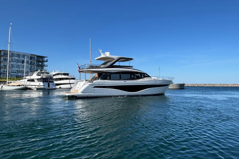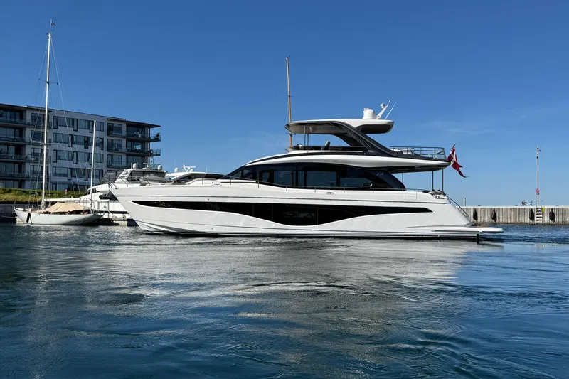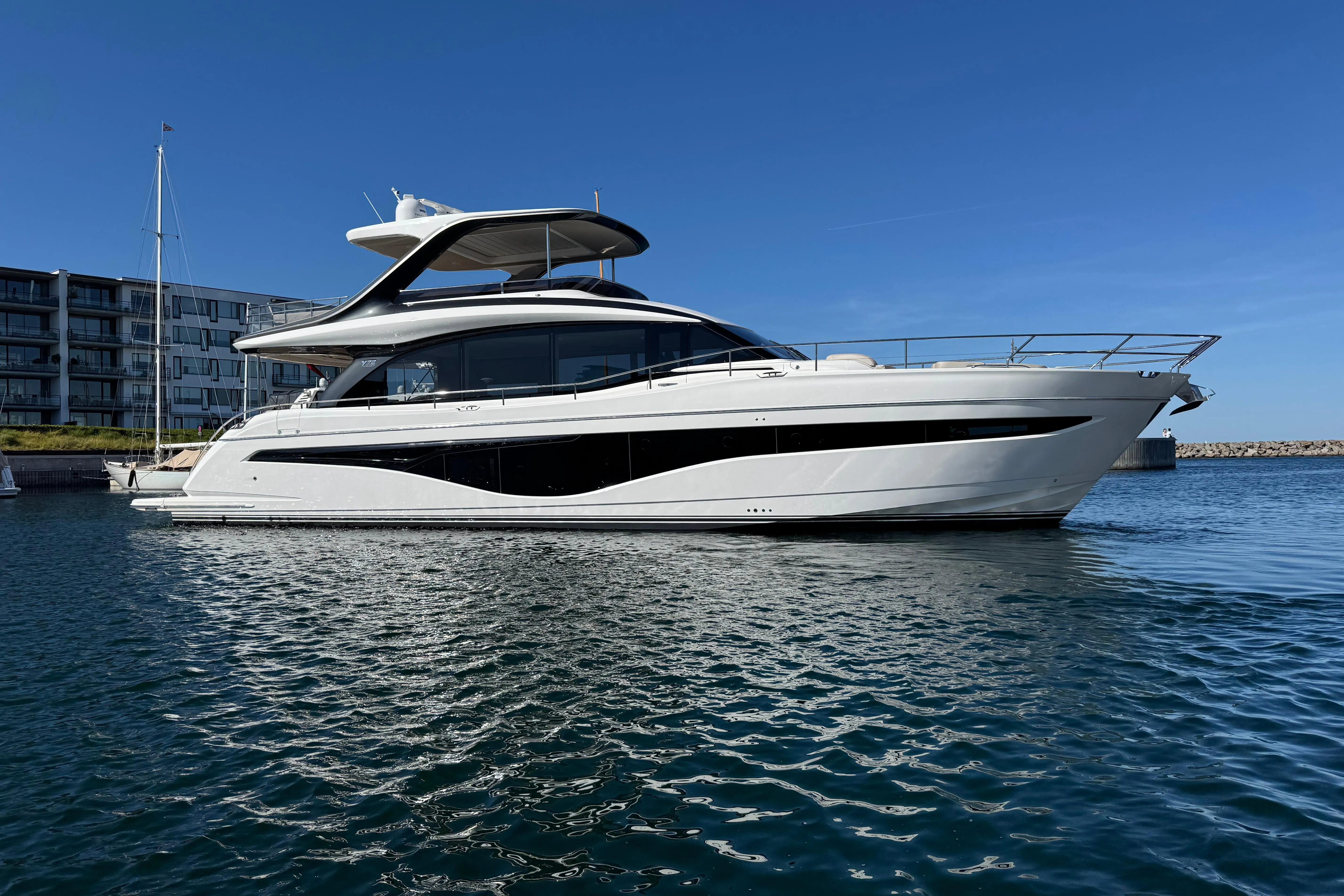 Magnificent Princess Y72 equipped with twin MAN V12-1650 hp diesel engines and satin walnut interior, hydraulic thrusters and fin stabilizers. The Princess Y72 is designed in collaboration with naval architects Olesinski and Italian design house, Pininfarina. Winner at the Motor Boat & Yachting (MBY) 2022 Motorboat Awards for best Flybridge over 60ft. Finished to high standards throughout, the all-new Y72s design features are comparable to those of larger Y Class yachts. Her spacious saloon has a sociable layout and open plan galley, complemented by a multi-zone Naim audio system. Eight guests are accommodated across four well-appointed en suite cabins with the full beam master stateroom accessible via a private stairway from the saloon. There is a further aft cabin with two berths for crew or occasional guests.