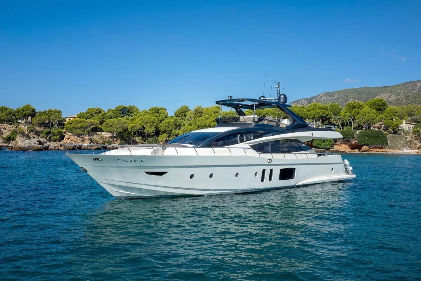 A beautifully maintained example of the shipyard’s prestige and craftsmanship. In 2017, she underwent a comprehensive refit at the Astondoa facilities in Santa Pola, including the addition of a striking hardtop with an electric retractable bimini and a robust hydraulic platform.