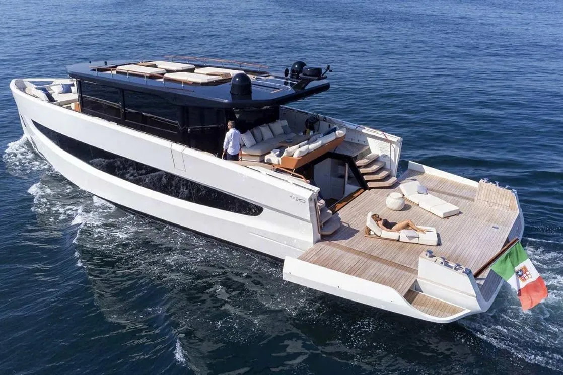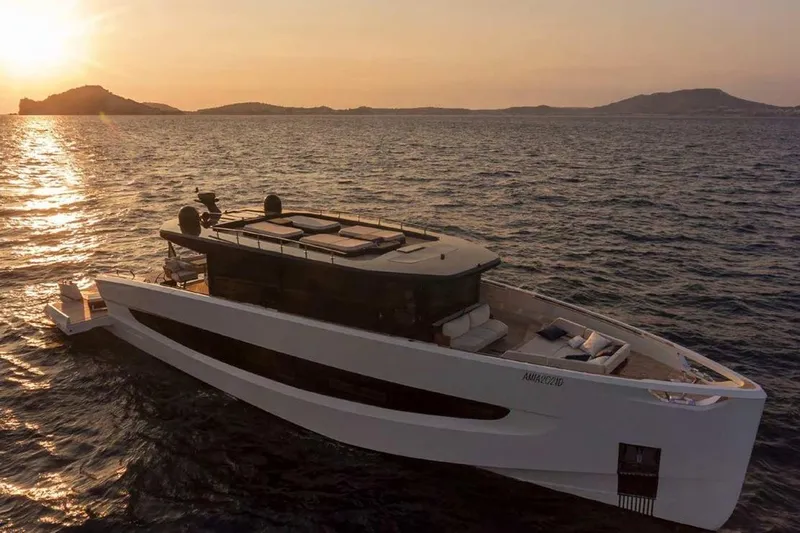 Designed by Valerio Rivellini, it blends the sophisticated details of the superyacht world with dynamic, sporty lines.