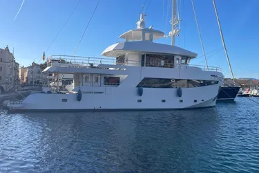 Mesurant un peu moins de 24 mètres, elle est conçue pour traverser les sept mers en toute sécurité, grâce à sa coque capable de résister à la glace de 8 mm d'épaisseur et à son autonomie d'environ 4 000 nm. Un explorateur capable d'aller partout avec une très faible consommation de carburant.