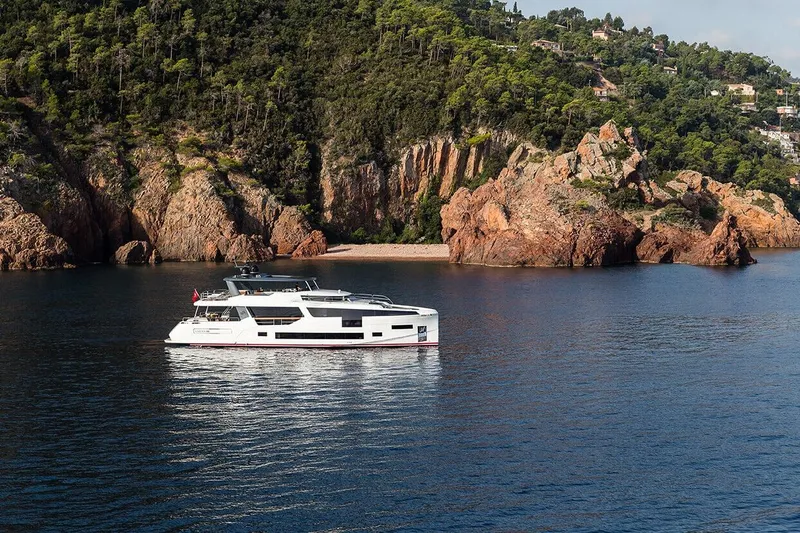 Sirena 88' 5 cabins version including owner's cabin forward on main deck providing a panoramic view and a private folding balcony and a direct access to the foredeck. The innovative swimming platform can be transformed to a waterside beach club. This unit designed by German Frers offers very versitile performances with a transoceanic range of 2500MN at 10 knots and a top speed reaching 25 knots.