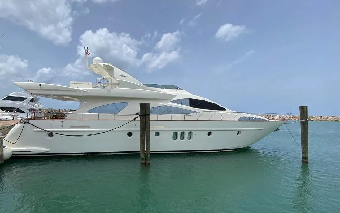 The 2001 Azimut 80 Carat is a luxurious flybridge yacht that exudes elegance and performance. With its crisp lines, and low-riding hull, it strikes a balance between size and maneuverability. While it may appear massive next to a 65-foot sport coupe, it doesn’t sacrifice agility.