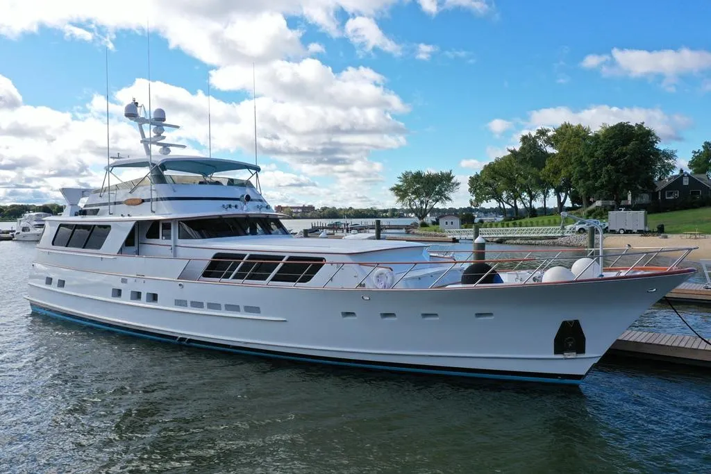 Here is a unique opportunity on the Great Lakes to own a Custom (no two alike) Burger 80 Motor Yacht that still sports her original design from the factory. She has not been cut, extended or modified from how she was created. This boat has very Beautiful lines and she is recognizable from quite a distance! This boat is so impressive in many ways and the owners have made many updates and improvements such as, New Awlgrip paint job on cabin top, deckhouse and forward bench seat area, Brightwork redone on toe rails and handrails, Props reconditioned, New Kohler faucets and shower heads throughout, New gaskets/seals on all port lights, New Pilot house corner windows and aft cockpit corner windows, Fresh oil changes on mains (also done yearly) and much more! At an approximate 9 million dollar price tag for new, this should represent a great opportunity with plenty of value to invest in further updates and personalization and be into an incredible boat at a fraction of the cost of new. There are 3 main Staterooms plus 3 berths forward in the crew quarters along with 6 total heads/4 shower stalls/1 tub, a Huge aft salon, Separate dining room, Complete galley, Large bridge deck with wrap-around seating for a crowd and an engine room that you can nearly stand-up in. There is so much to see and admire in this boat, the possibilities are almost endless! Give us a call or email for all the details.