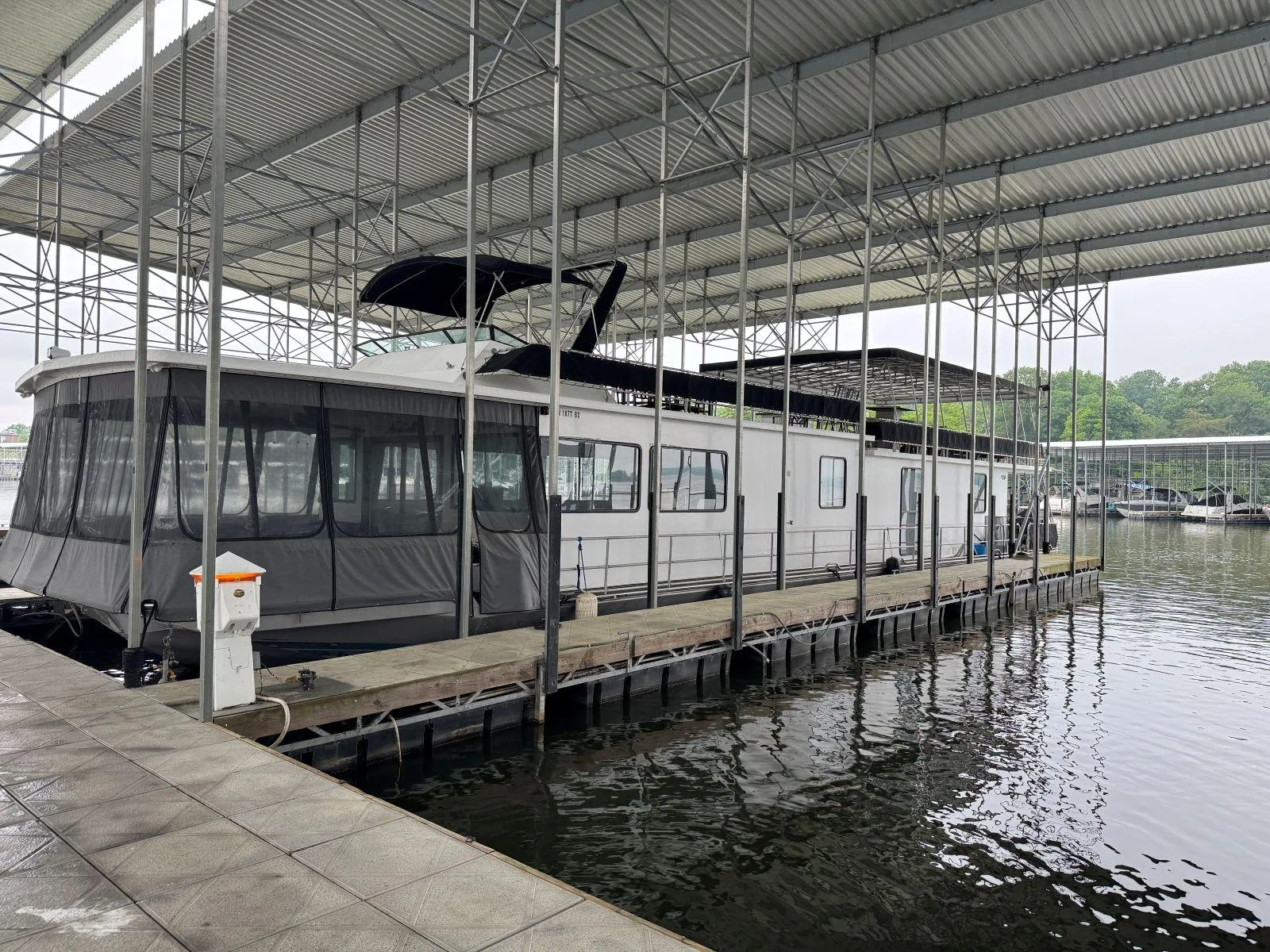 This boat is kept in a covered slip on a freshwater lake
