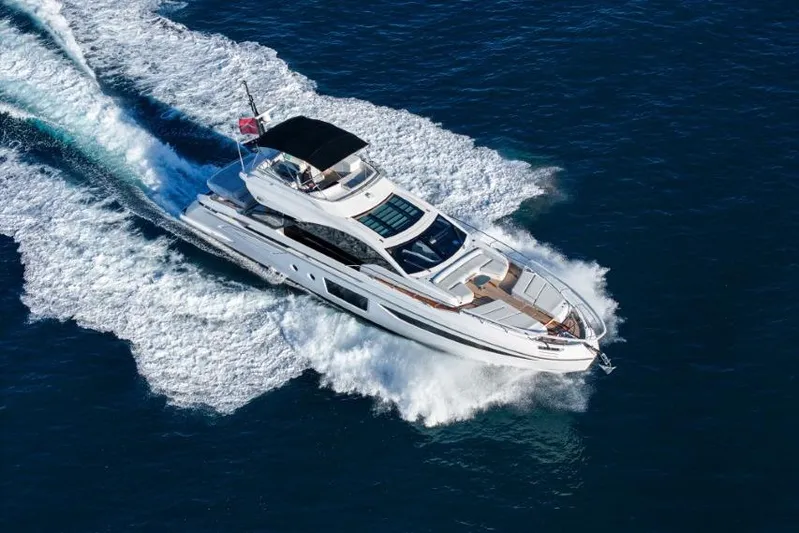 Phare de poursuite (électrique avec commande supp), Spots sous-marins, Passerelle (hydraulique), Stabilisateurs (Seakeeper NG 18), table de cockpit (finition carbone et avant du bateau), Pont en teck (au fly et espace avant), Winch électrique arrière.