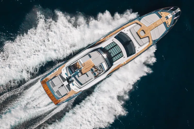 Her sleek lines and striking profile are matched by a completely fresh new design, featuring the all-new Yachtique interior, a new fresh and distinctive style that blends luxurious materials with warm, inviting tones. There is no other S8on the market with this new interior, making her a truly standout vessel.