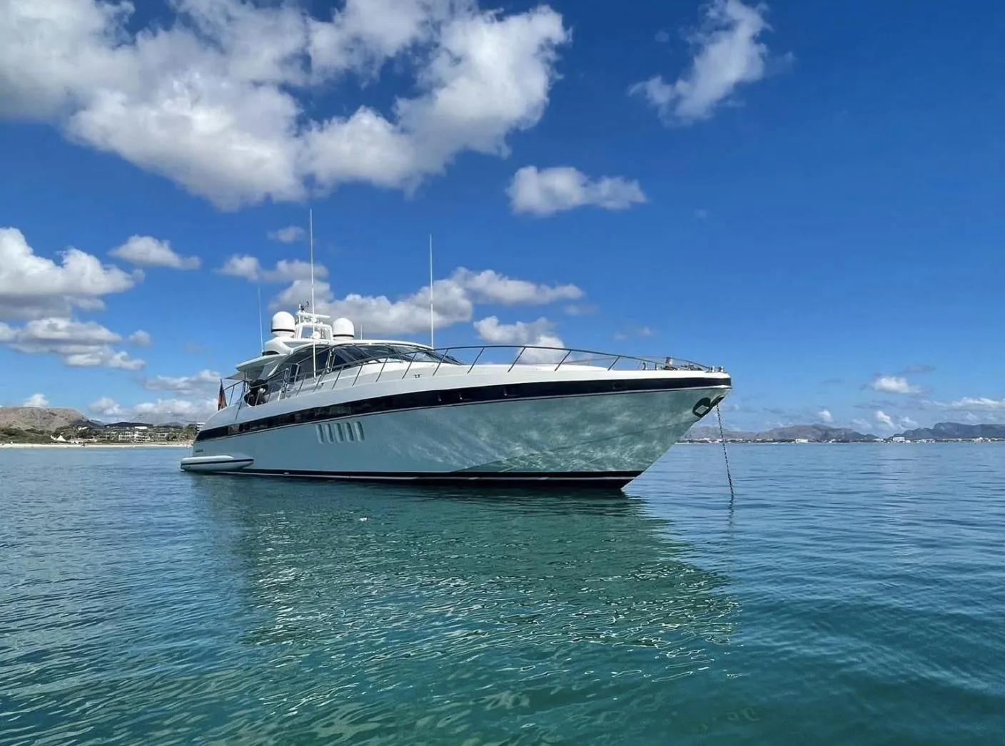 This stunning Mangusta 80 Hard Top is now available for sale in Mallorca. Exclusively used for private purposes, this yacht is in excellent condition, thanks to continuous maintenance and regular upgrades. Recently, it has received several enhancements, including modern navigation electronics, a revamped cockpit, and refurbished teak decks. Additionally, a solar system with panels and batteries has been installed, allowing for peaceful overnight stays at anchor without the need for the generator. The complete service history is available for review.