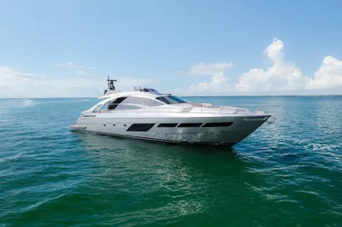 NOVA is a 2021 Pershing 8X that embodies the brand’s carbon-fiber “X Generation” ethos—lightweight, hyper-performing, and meticulously finished. Delivering true sport-yacht performance with a 41-knot cruise and 48-knot top speed, she combines Pershing’s trademark power with refined Italian craftsmanship. With a beam of 19’3”, NOVA offers generous social zones and a bright, contemporary interior across three staterooms plus separate crew quarters.