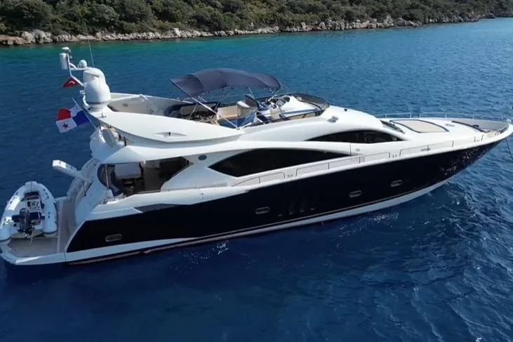 Recently refitted and mechanically sound, this Sunseeker 82 Flybridge is a solid platform for private cruising or charter, offered at fair price and lying in Kaş, Türkiye.
