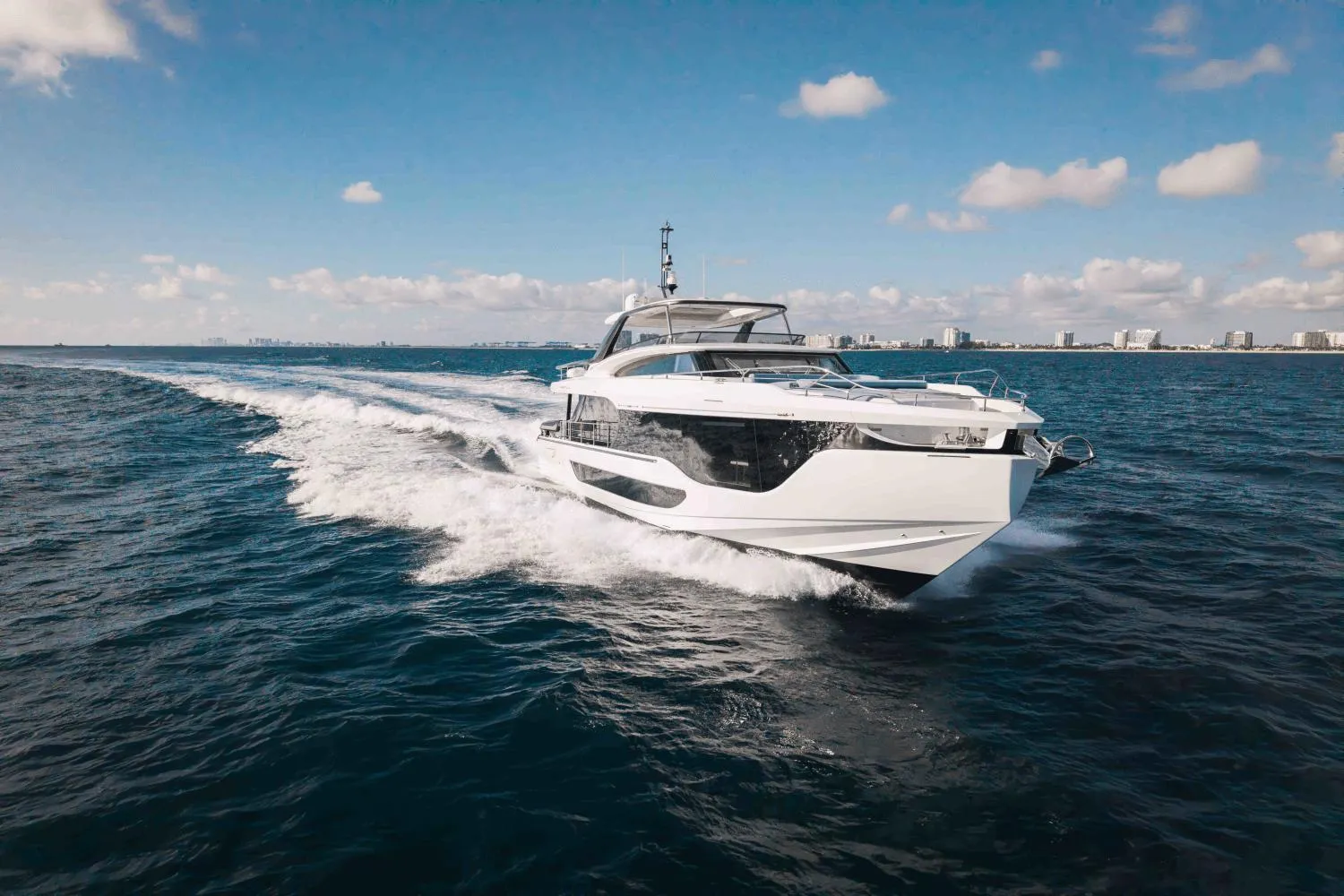 Embark on your new adventures with the 2023 Azimut Grande 26 Metri, powered by twin MAN 1650 engines, offering a total of 1650hp for unmatched speed and agility on the water. This powerhouse vessel ensures you can cruise confidently through the waves, providing both excitement and performance with ease.