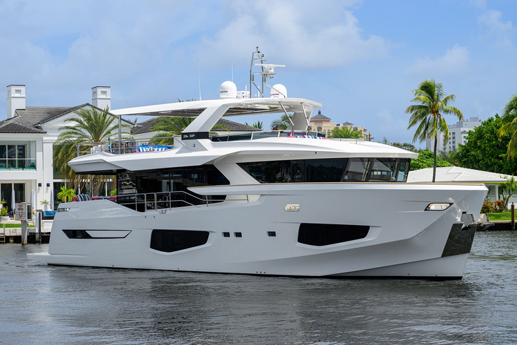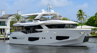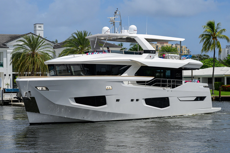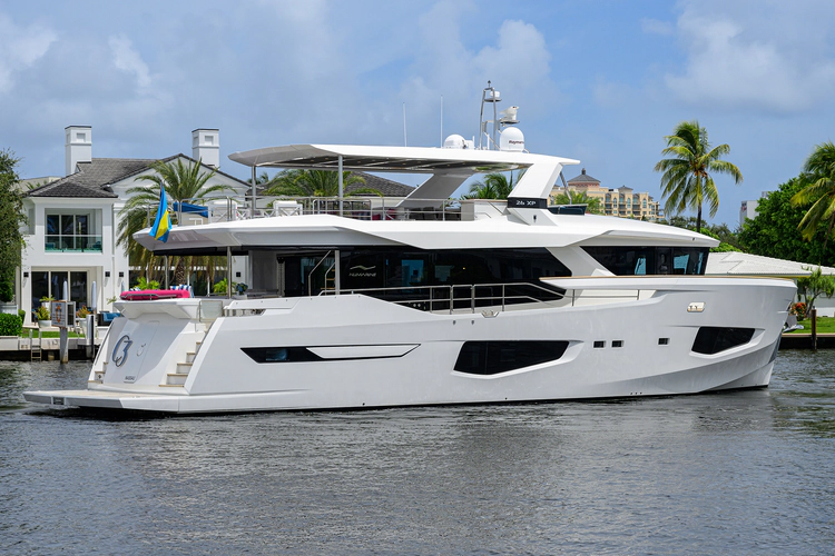 C3, the 2023 Numarine 26XP was specifically built for the American market and features upgraded MAN 1800hp engines giving her a top speed of 31 knots with a cruise speed of 23 knots. At economical speeds she has an impressive range of 1,200nm. The 26XP is a large volume 85' motor yacht that features floor to ceiling windows in the main salon, large galley with plenty of storage and refrigeration, spacious wheelhouse with sitting area and forward raked windows for great visibility. The aft deck has a large dining table, massive amount of storage and stairs theat lead up to the sundeck complete with second helm station, dining & lounge area with custom deck furniture, bar area, and extended hard top.