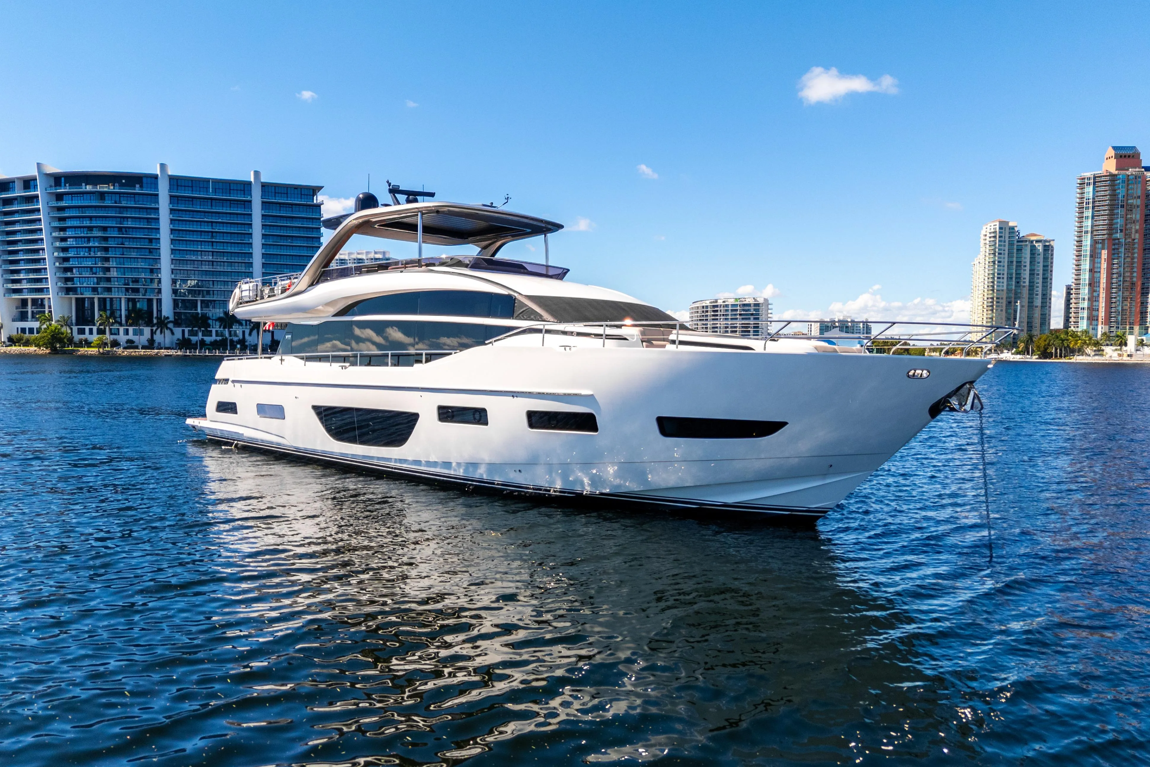 The 2022 Princess Y85 is a luxurious 85-foot flybridge motor yacht combining sleek Pininfarina-styled lines with exceptional comfort and performance. Powered by twin MAN V12 engines, it reaches speeds around 30 knots while offering spacious indoor–outdoor living with four guest cabins and elegant panoramic glazing. Her flybridge is designed for al-fresco luxury: a large dining area opposite a well-equipped wet bar, plus a generous aft sun-pad for lounging and entertaining Designed for both relaxation and sophistication, the Y85 embodies Princess Yachts’ craftsmanship and modern British luxury at sea.