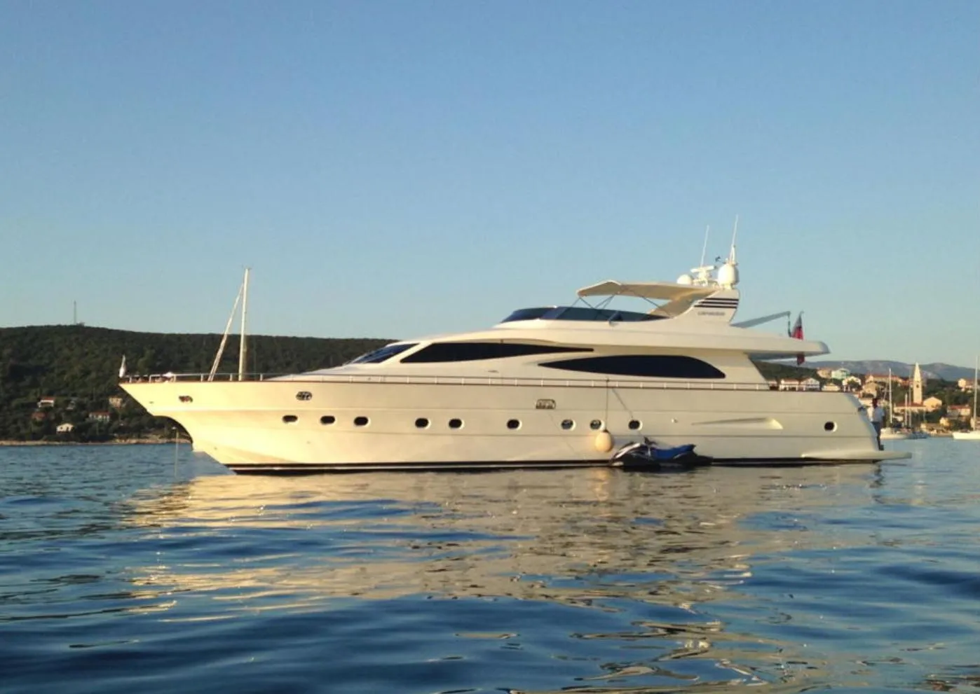 2005 86’ Canados Fly, located in Italy. Luxurious design, spacious interiors, and top-notch performance make it an ideal choice for cruising the Mediterranean waters.