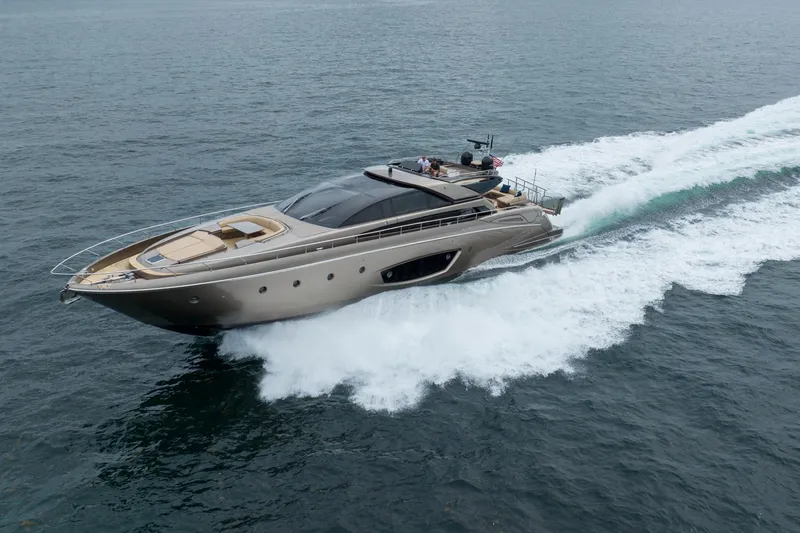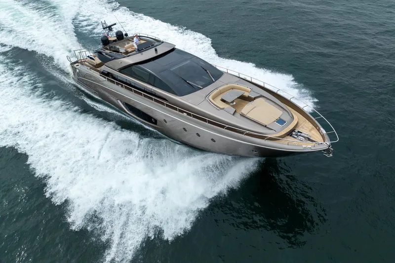 A true Italian masterpiece from Officina Italiana Design, DA ROSE combines sleek lines, high performance, and rare custom features. Her dynamic profile make a striking impression, while twin MTU 2435hp engines deliver a fast 32-knot cruise and 36-knot top speed. Inside, she offers a light-filled salon finished in striped rosewood, fine leathers, and polished steel, with accommodation for 8 guests across 4 luxurious staterooms — including a full-beam master suite.