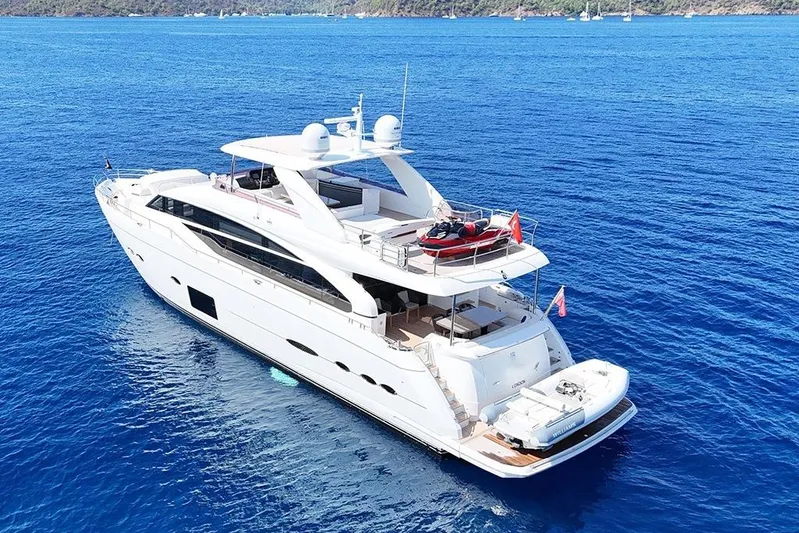 The Princess 88 Motor Yacht, built in 2016, is a stunning example of British craftsmanship and engineering. With her sleek 27-meter profile and elegant exterior lines, she offers a commanding presence on the water — combining timeless design with modern innovation.