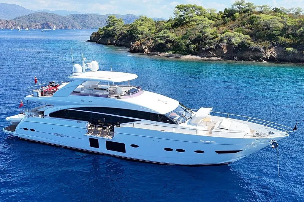 Accommodating up to 8 guests across 4 spacious staterooms — including a full-beam master suite — the Princess 88 ensures a truly luxurious onboard experience. Separate crew quarters provide privacy and professional service for up to 4 crew members.