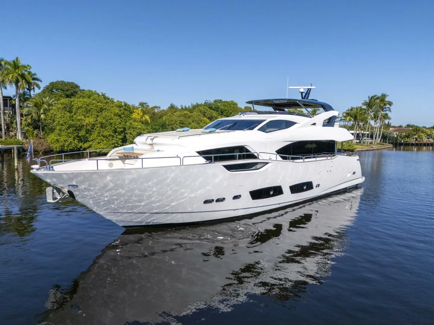 This Sunseeker 95 Yacht’s striking lines and innovative layout exemplify Sunseeker’s cutting-edge design and advanced build processes, merging the grandeur of a superyacht with the practical benefits of a motor yacht in this size range.