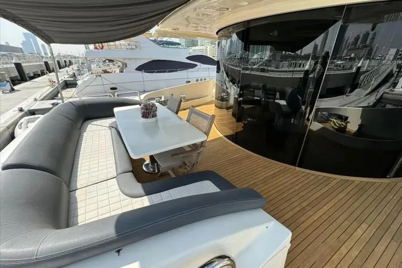 • Flybridge Features: Bar, grill, sunpads, Jacuzzi, 360° lounge & dining area