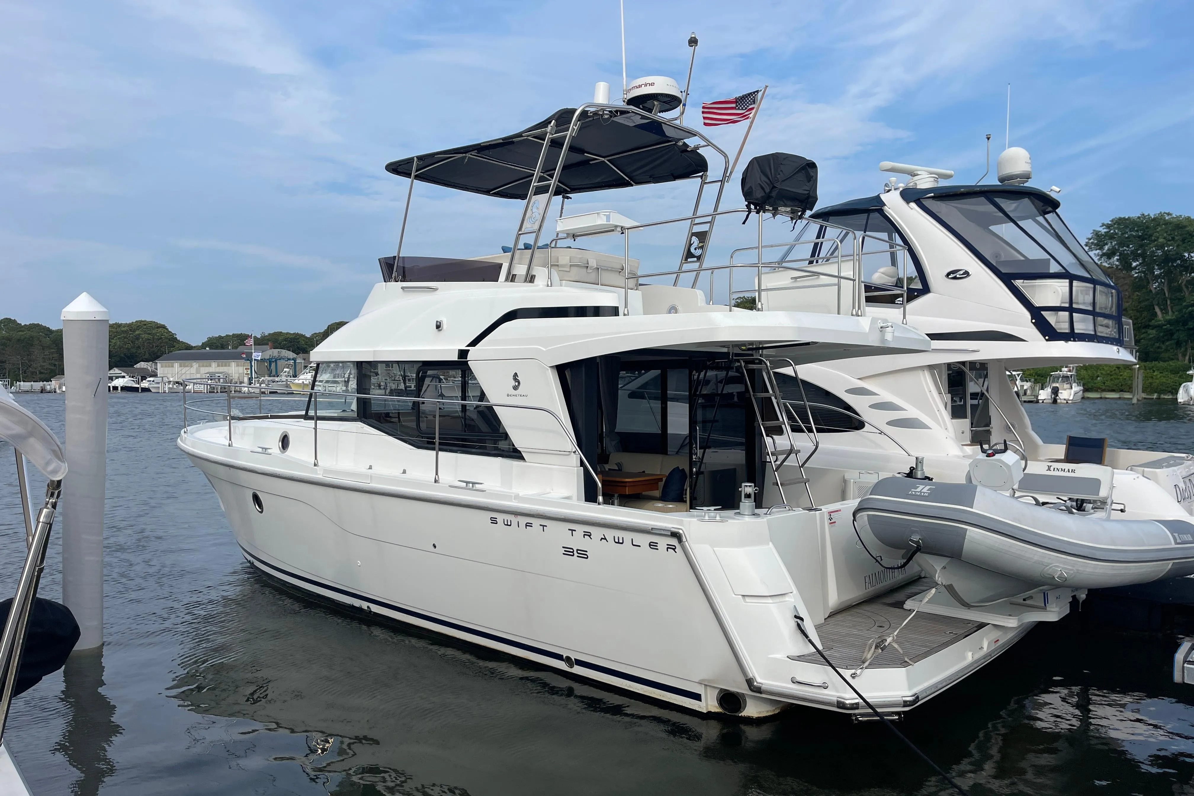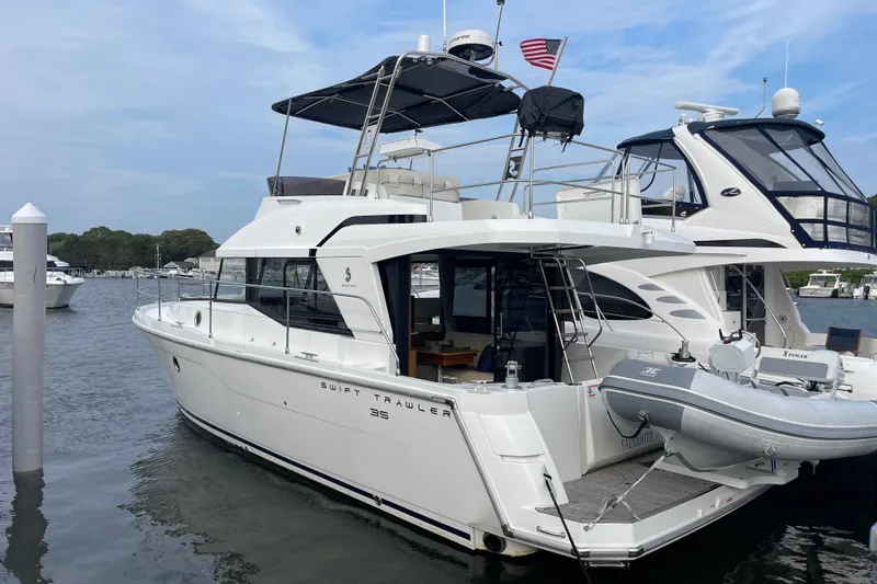 Introducing the Beneteau Swift Trawler 35 Flybridge, a remarkable 2018 model that embodies the perfect blend of style and performance. With an overall length of 35 feet, this used trawler is crafted from durable fiberglass, ensuring longevity and resilience on the water. Powered by a robust Cummins QSB6.7I inboard engine, delivering an impressive 425 horsepower, it offers a cruising speed of 17 mph and a maximum hull speed of 21 mph, making it an excellent choice for adventurous outings. With a range of 160 miles, you can explore further with confidence. The accommodation features two comfortable cabins and a well-appointed head, providing ample space for relaxation. Equipped with an electric windlass, the Swift Trawler 35 Flybridge enhances your boating experience with convenience and ease. This vessel is designed for those who appreciate quality and performance, making it a fantastic choice for your next maritime adventure.