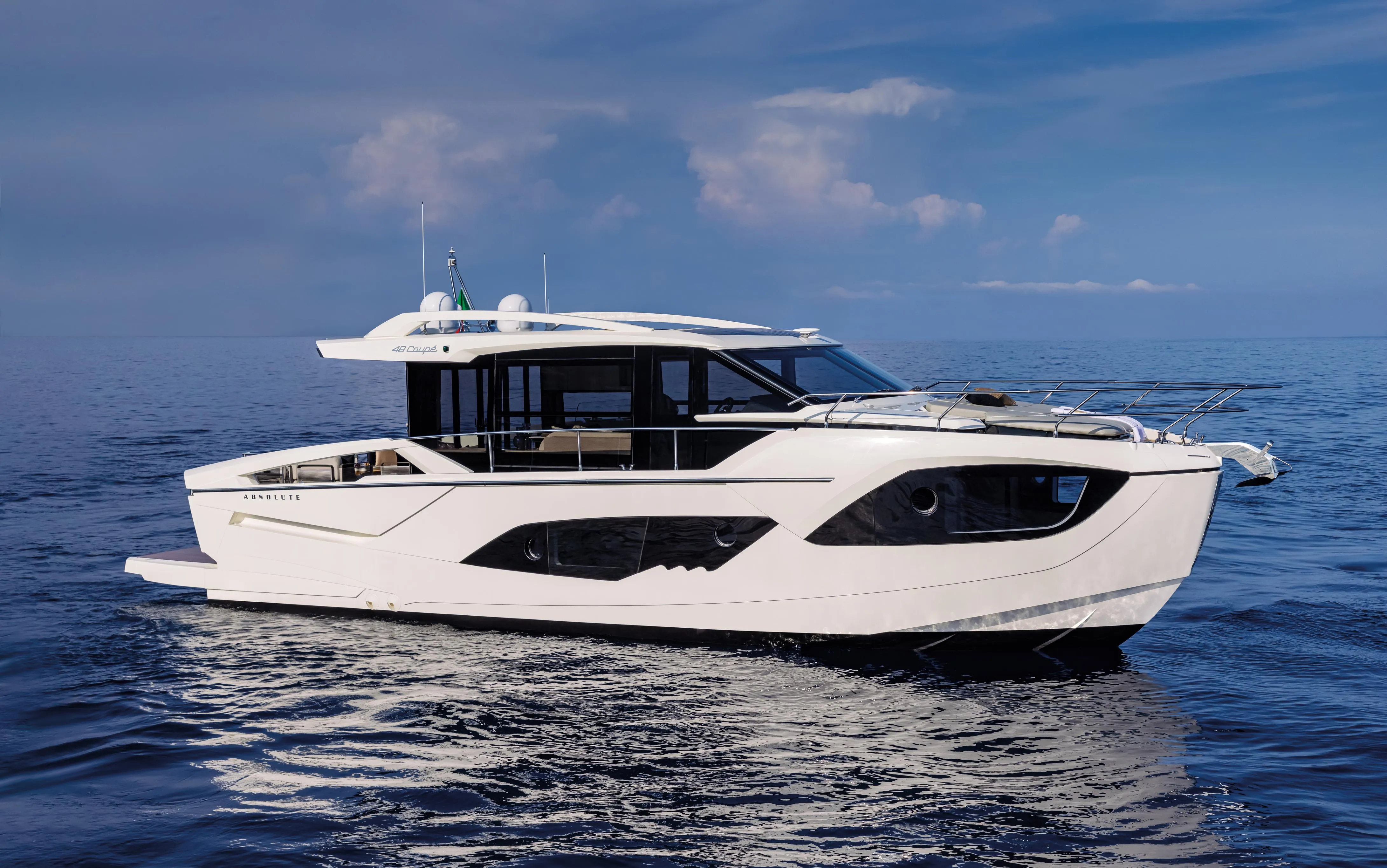 The Absolute 48 Coupé combines sporty lines with comfort and versatility. It stands out for its bold style, usability, and commitment to sustainability. The spacious, adaptable cockpit offers direct sea views through its side openings and glass balustrades. The exterior furniture can be easily arranged for relaxation or socializing. Contact us today for more information and book your experience on the 48 Coupé!