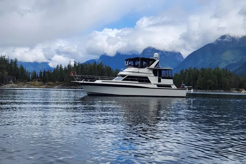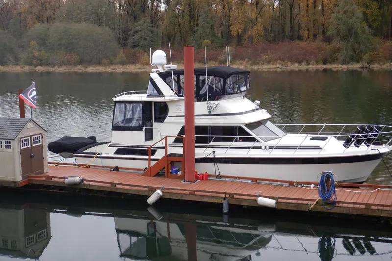 Introducing the stunning 1988 Camargue 48 Cockpit Motor Yacht, known as "ALASKA SEA DUCTION." This impressive vessel boasts an overall length of 52 feet, crafted from durable fiberglass with a semi-displacement hull shape, ensuring both stability and performance on the water. Powered by twin Caterpillar 3208 TA inboard engines, each delivering 375 hp, this yacht is designed for exhilarating cruising at speeds up to 17 knots, with a comfortable cruising speed of 10 knots. With a generous range of 550 miles, it's perfect for extended voyages. Accommodations include two well-appointed cabins and two heads, making it ideal for family adventures or entertaining guests. The yacht features an electric windlass for ease of anchoring and has a seating capacity for up to 12 people, ensuring everyone can enjoy the journey. Experience the perfect blend of luxury and performance with the ALASKA SEA DUCTION. Meticulously maintained by an experienced couple and moored 6 months during the winter on the Columbia River.