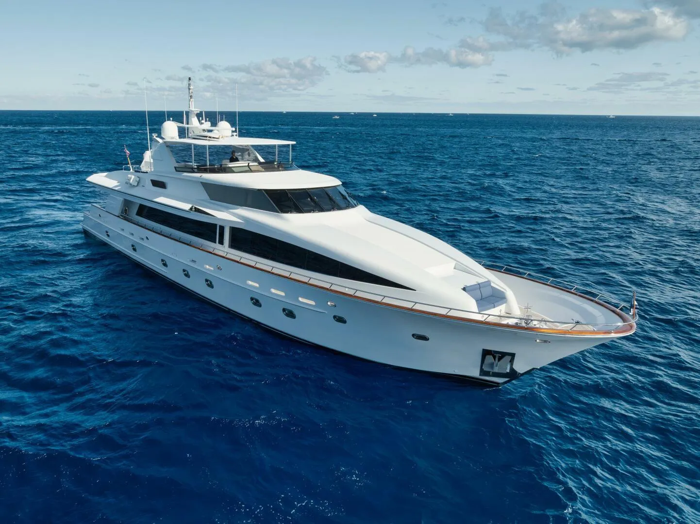Alican offers a unique opportunity to own a 120’ motor yacht that combines spaciousness, elegance, and exceptional design. Her thoughtful layout enhances comfort and livability, making her an ideal vessel for extended cruising or entertaining. Thanks to her composite construction, exterior maintenance is notably easier compared to traditional materials, ensuring she stays in top condition with less effort. Well-maintained and consistently upgraded, Alican is a stunning yacht that stands out for both her beauty and practicality. "The Alican is a stunning 120-foot Sovereign custom-built yacht from British Columbia. It boasts a large volume interior adorned with teak and exquisite joinery work. Featuring a rare six-stateroom layout, this vintage 2002 yacht is beautifully maintained and ready for sale. With state-of-the-art electronics and equipment updated in the last two years, the Alican is ready to go and promises to make someone very happy with a beautiful boat.