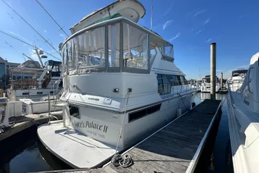 The Carver 440 Aft Cabin Motor Yacht features as a very comfortable & spacious interior with a very large salon, (2) Large Staterooms, with the Master Aft and the Guest forward. There are (2) Full Heads and Both have Separate Shower Stalls, Full Galley, Dinette forward and Washer & Dryer. The Flybridge and Aft Deck are also very spacious. She's well equipped and features a 2000 13' Boston Whaler Tender with Mercury 25hp outboard motor; dingy davit, generator, reverse cycle A/C's, Plus Much, Much More!
