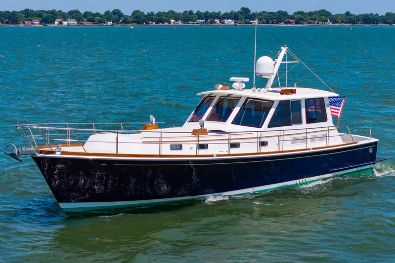 While all of the Grand Banks Eastbay 49's have always been popular, "Amyleasa" is an ESPECIALLY FINE example of the more rare and desirable Salon Express (SX) model with the factory hard-back salon enclosure vs the soft enclosure found on the Hardtop Express (HX). Even more rare and sought-after is the fact that she has the side door leading to the side decks at the helm- a feature that most cruising couples consider a "must-have" on any "DownEast" style cruising yacht. She is powered by the much preferred Caterpillar C12 engine package with 2060 hours, and services are up to date. Additionally, "Amyleasa" has an AWLGRIP painted hull, and has recently received numerous key upgrades over the years. With over $200,000 being spent in 2023-2024 alone, she is in excellent condition. Some of the more recent upgrades include: